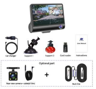 מצלמת רישום נסיעות מצ רכב 1080 מצלמת דרך לרכב תמונה קדמית, פנימית והפוכה תצוגה על מסך 4" הקלטת וידאו ברזולוציה גבוהה צילום זווית רחבה של 170 מעלות חיבור להפעלת דרך המוציא ברכב הקלטת איכות גבוהה חיישן G טכנולוגי עם חיישן תנועה במקרה של תאונה צילום ברזולוציה של 5 מ"ג תמיכה בכרטיס זיכרון עד 32GB חיישן תנועה אבחנתי לשמירת זיכרון ושימוש ארוך טווח תמיכה בחישוק ראייה לילית דרך פתיחת IR פורמט וידאו: PAL / NTSC טווח תדרים: 50Hz / 60Hz סוללה: 300mAh ספק כח: 5V / 1A הערכה: 1. מצלמה 2. מטען לגיר המכונית 3. עמדה לתליית מצמד 4. ערכת חיבורים למצלמה אחורית